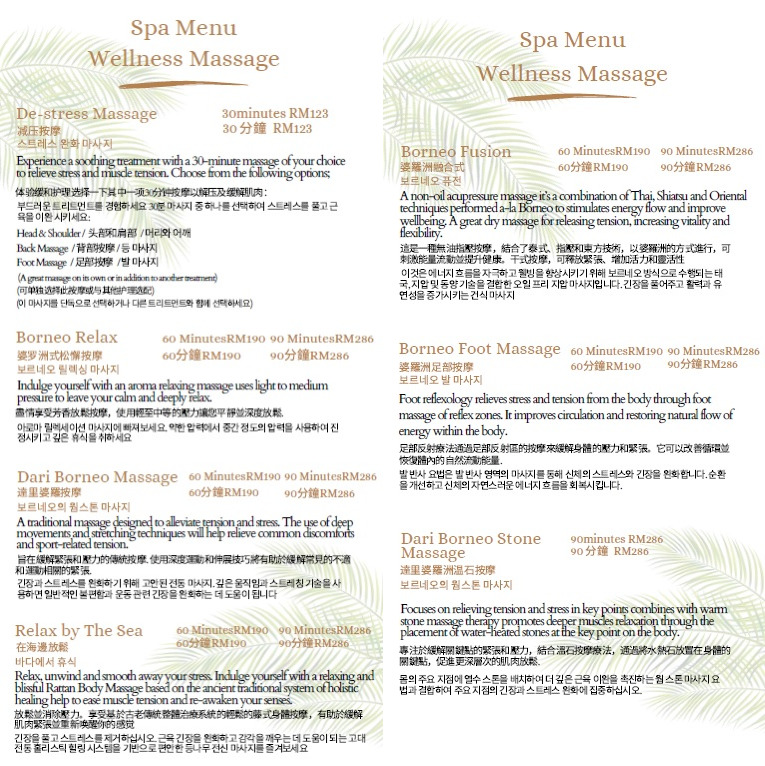 Please note that this pricing is from our trip in April 2025 so depending on when you are reading it, the pricing may change. For this, they don’t have the services available for online payment, and you have to go and pay at the property. We had Borneo Relax.